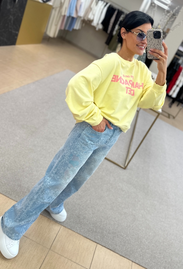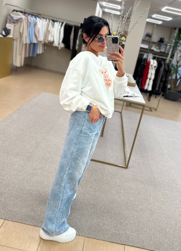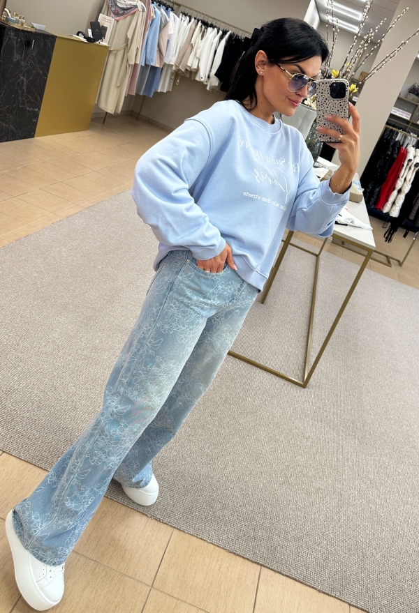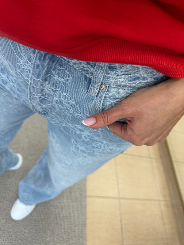 Jei ieškai išskirtinių, bet lengvai derinamų džinsų – štai jie. Šviesinto denimo modelis su subtiliu, visą audinį dengiančiu siuvinėjimu atrodo itin prabangiai ir iš karto sukuria „wow“ efektą.