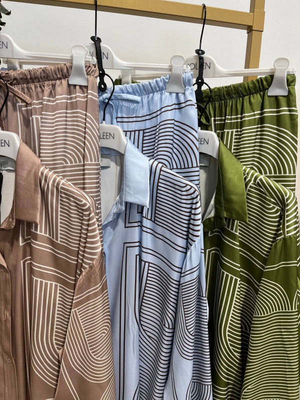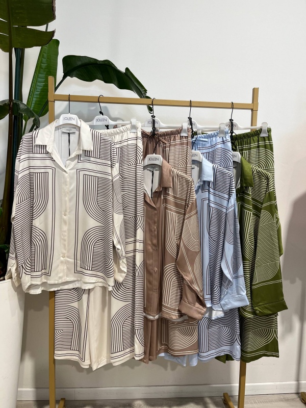Šie 100% viskozės kostiumėliai – tai vienas universaliausių pasirinkimų pavasariui, vasarai ir jaukiems pereinamiesiems sezonams. Audinys švelniai krenta, maloniai liečiasi prie kūno ir leidžia odai kvėpuoti, todėl jausitės patogiai visą dieną.