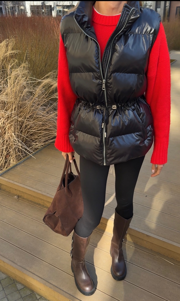 Stilinga, lengva ir tuo pačiu labai funkcionali – ši liemenė taps vienu universaliausių tavo garderobo pasirinkimų. Prabangiai atrodanti kokybiška medžiaga ir subtiliai paryškintas liemuo sukuria itin moterišką siluetą. Modelis su reguliuojamu liemeniu leidžia prisitaikyti formą pagal save – gali dėvėti laisviau arba išryškinti liemenį, priklausomai nuo nuotaikos ir derinio. Puikiai dera tiek su jaukiais megztiniais, tiek su lengvesniais pavasario deriniais.