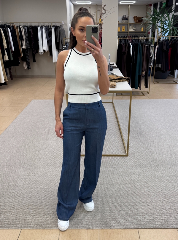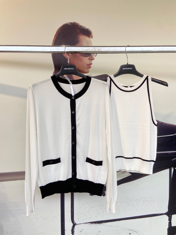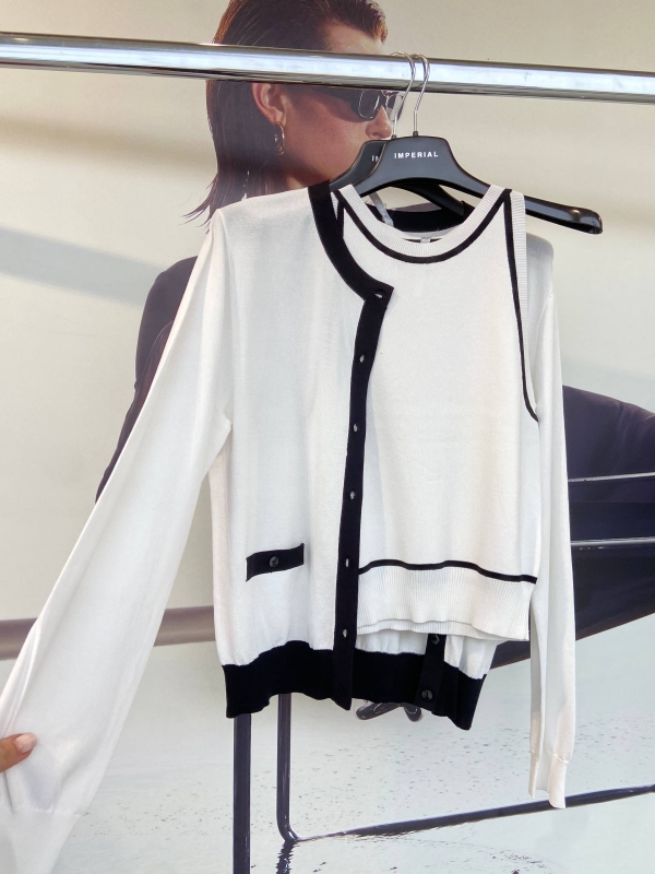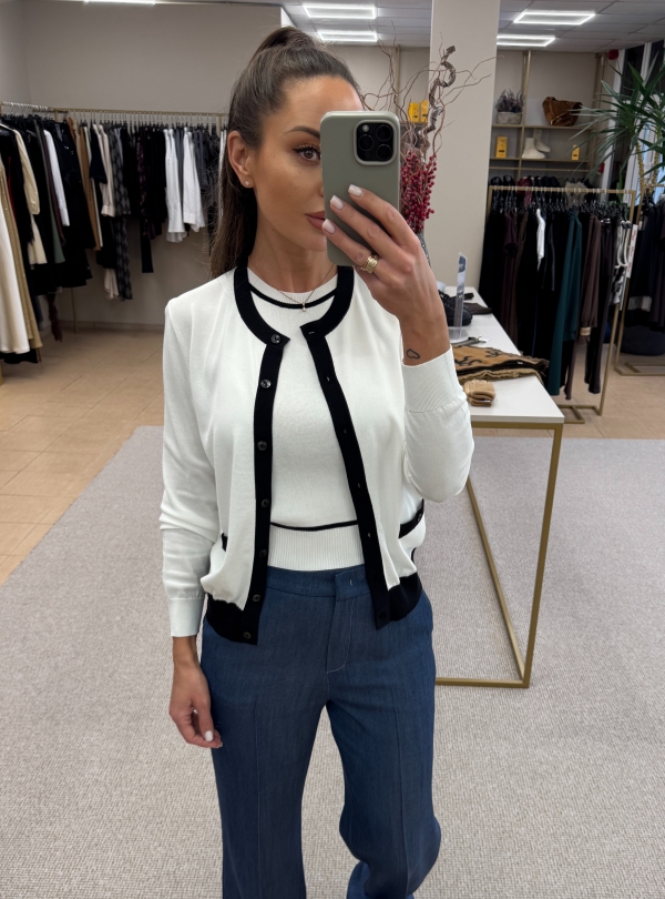 Minimalistinio dizaino trikotažinė palaidinė, kuri išsiskiria švaria linija ir subtiliomis kontrastinėmis detalėmis. Priglundantis modelis gražiai formuoja siluetą, o elastingas audinys užtikrina komfortą visai dienai.