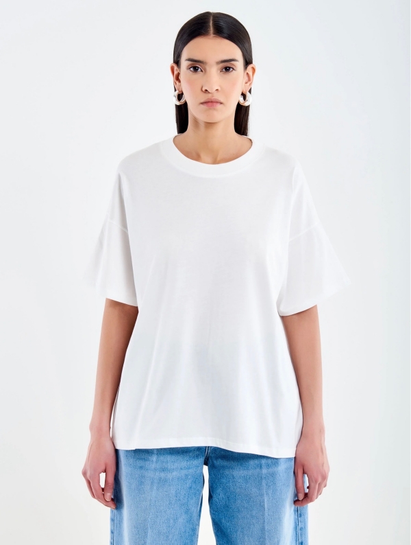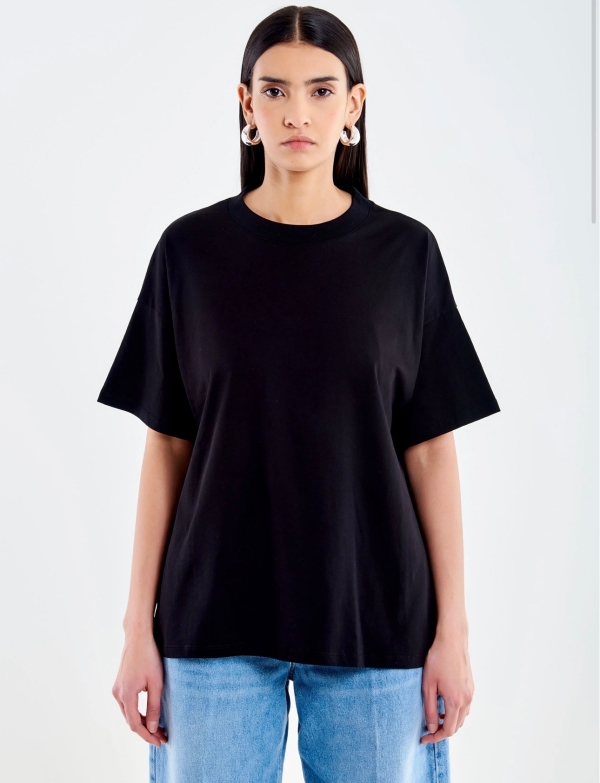 Tobuli baziniai marškinėliai, kurie tampa nepakeičiama garderobo dalimi. Laisvo, oversized silueto modelis su trumpomis rankovėmis ir klasikinės formos apvalia kaklo iškirpte. Minimalizmas, kuris visada atrodo stilingai.