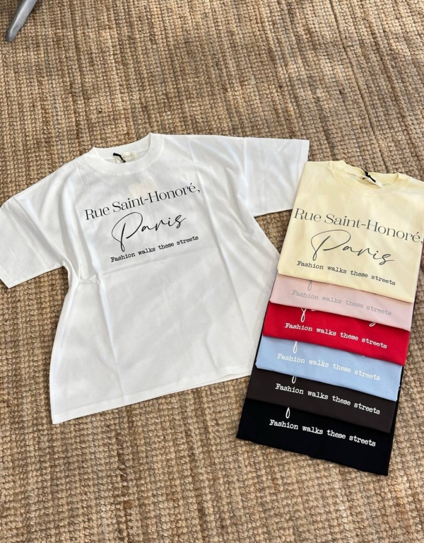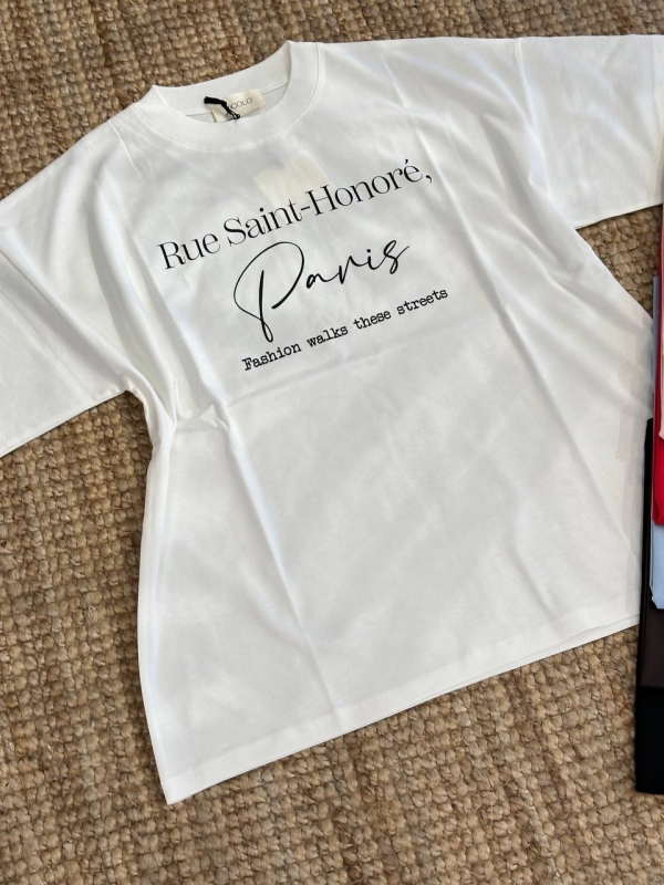Minimalistinis Paris įkvėptas užrašas suteikia subtilios elegancijos, o laisvas oversized modelis užtikrina patogumą ir stilingą siluetą.