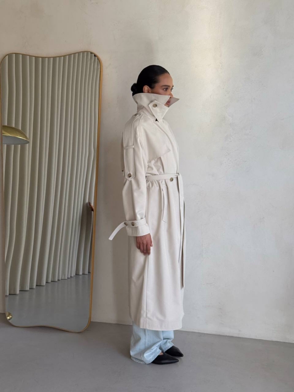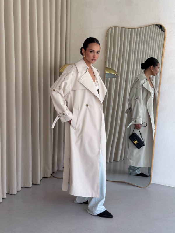 Šviesus trench coat – vienas ryškiausių 2026 metų sezono favoritų. Tai moderni klasika, kuri atrodo itin prabangiai ir lengvai pritaikoma tiek kasdieniam, tiek elegantiškam įvaizdžiui.