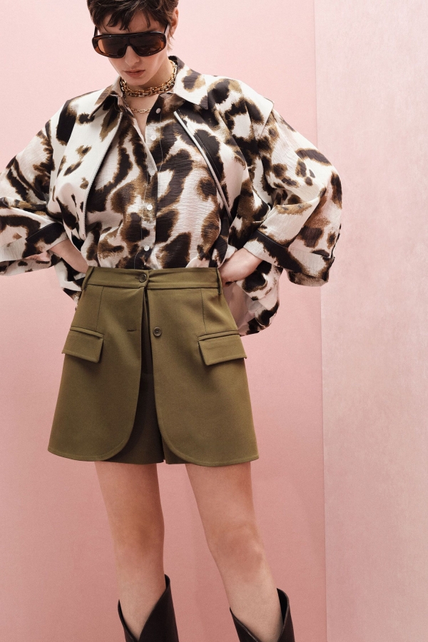 Itin stilingi ir išskirtiniai Imperial sijonšorčiai, sujungiantys sijono eleganciją ir šortų patogumą. Šis modelis išsiskiria moderniu siluetu, originaliu priekio kirpimu bei subtiliomis kišenėlių detalėmis, kurios suteikia drabužiui charakterio ir išskirtinumo.